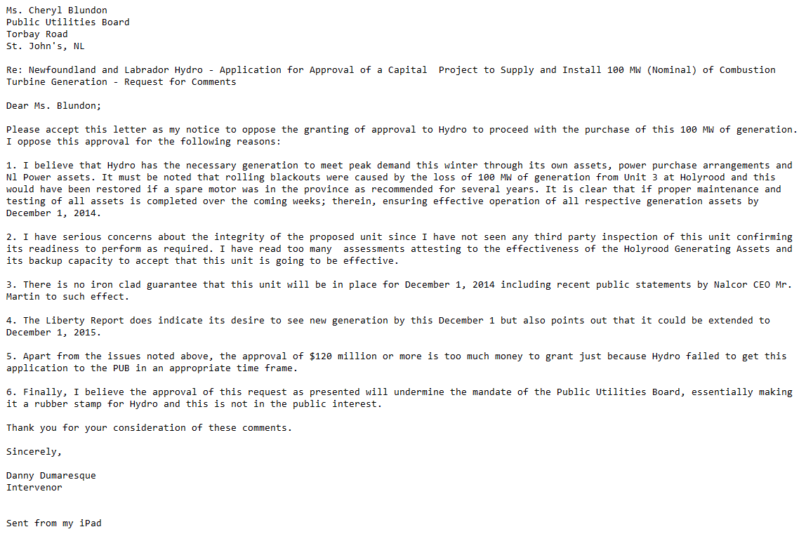 April 16, 2014 ~ Danny Dumaresque Intervenor Submission